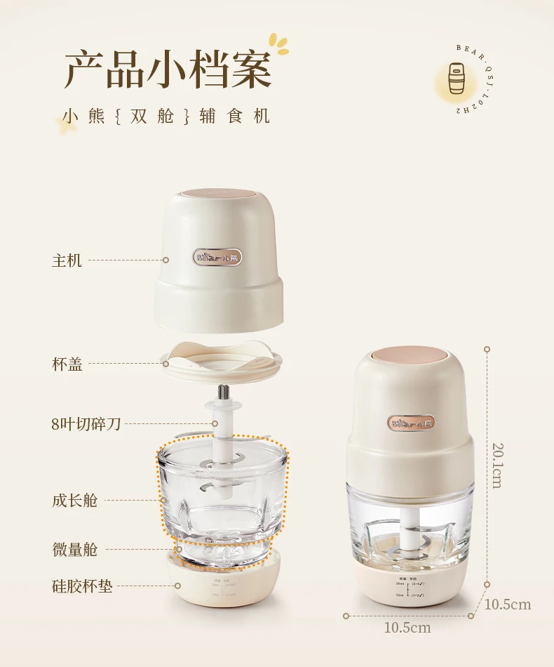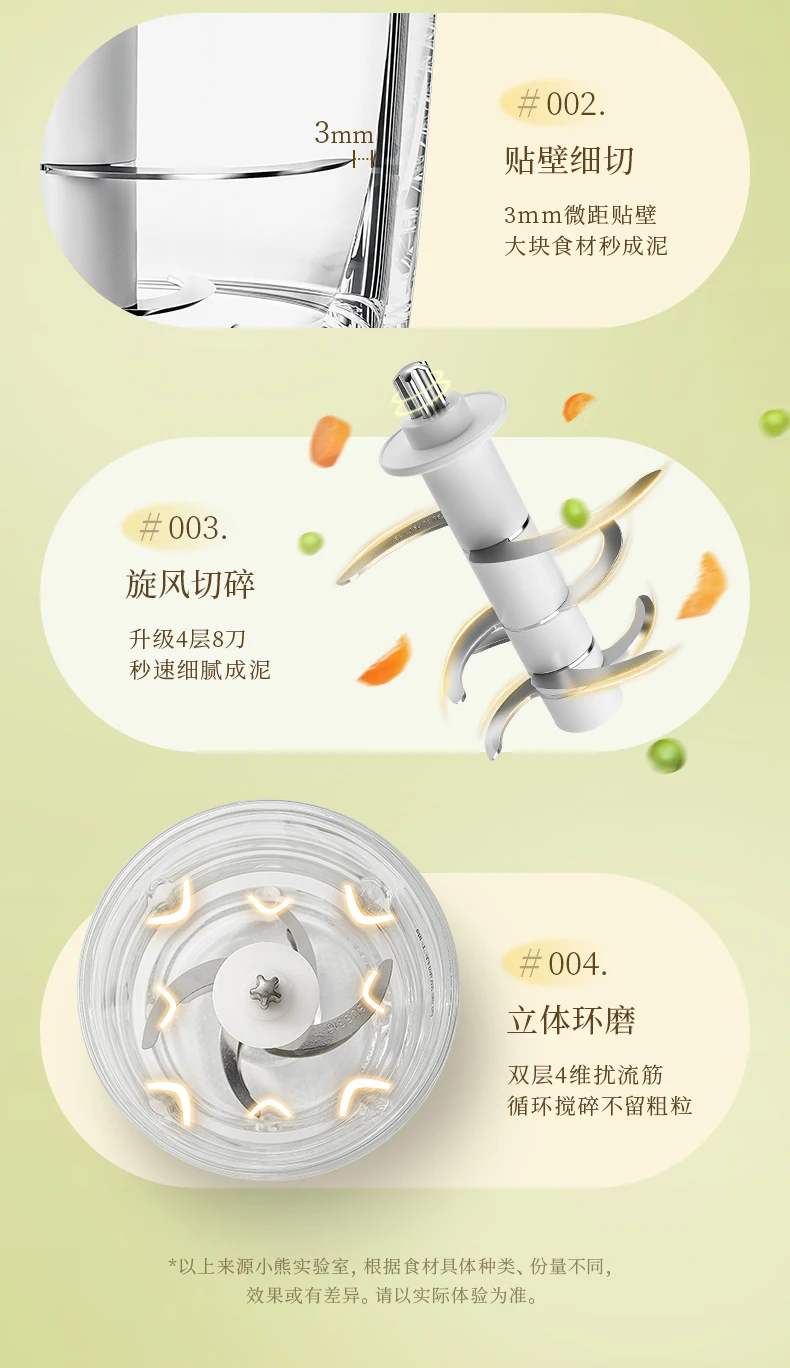 Mini Baby Food Processor 8-Blade Electric Grinder and Blender, 150mL Compact Design, Food-Grade Material,Easy Clean Puree Maker